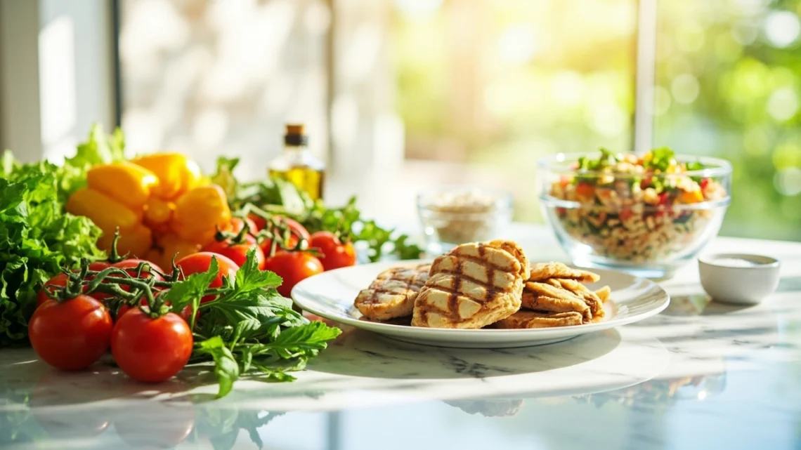 Un repas rapide équilibré combine protéines, fibres et bons lipides : par exemple une salade de quinoa avec légumes rôtis, pois chiches et avocat, ou un wrap au poulet, légumes et yaourt. Ces compositions gardent l’énergie sans lourdeur.
